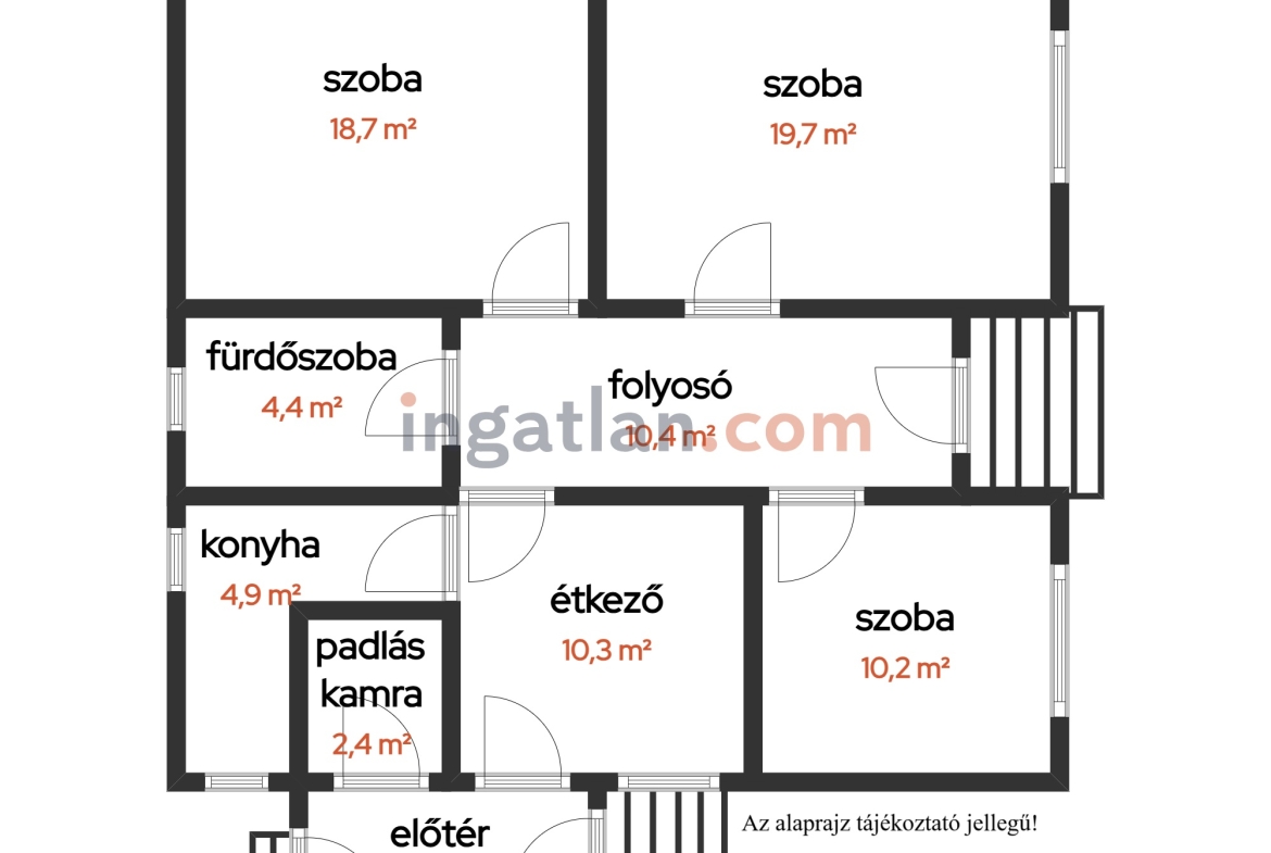 Kb. 17,7 m²-es kamra, amely felett külön padlás is található